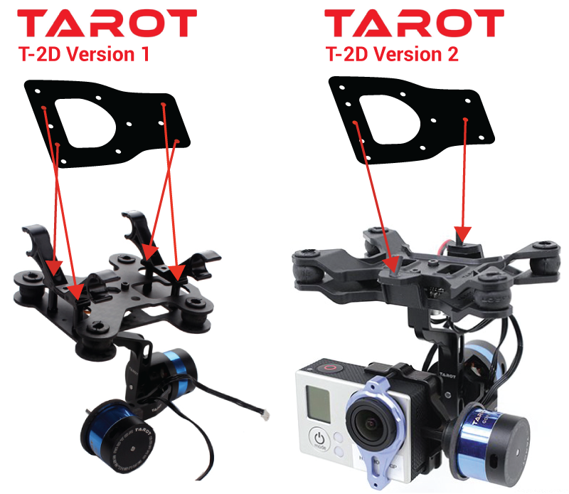 This new design works on both Tarot T-2D version 1 AND version 2 gimbals.