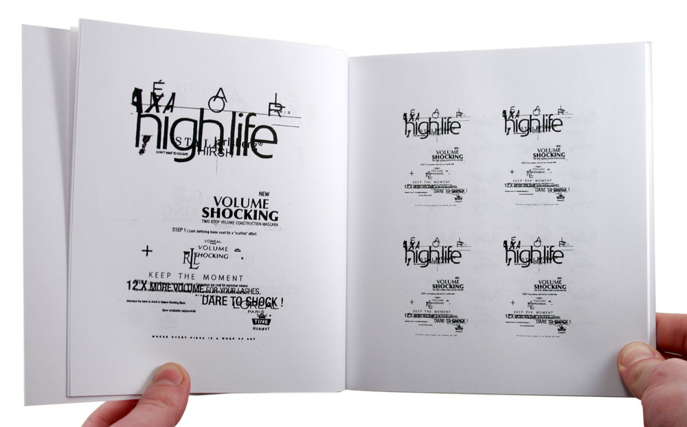 Once a cultural composition is created through layer of popular signs and symbols repetition occurs exponentially with each page. There is a point at which all meaning is removed, leaving only abstracted noise and marks. The technology has eroded its own observable sense making and continues to produce further abstractions on the same meaning plane but continuing in exponential repetition until no marks remain.